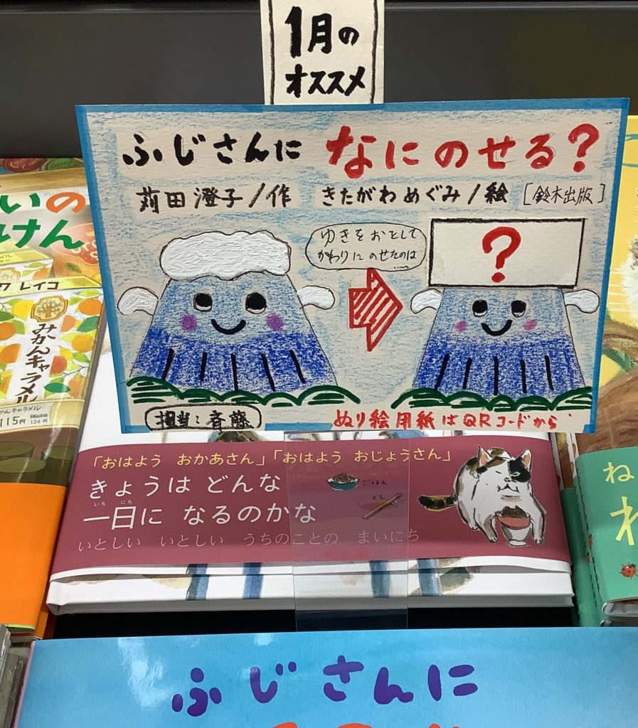 ふじさんはみんながだいすきなやま。あるひ「あきちゃった」といって、あたまにのせたゆきをおとしてしまいます。ふじさんがゆきのかわりにのせたのは…?